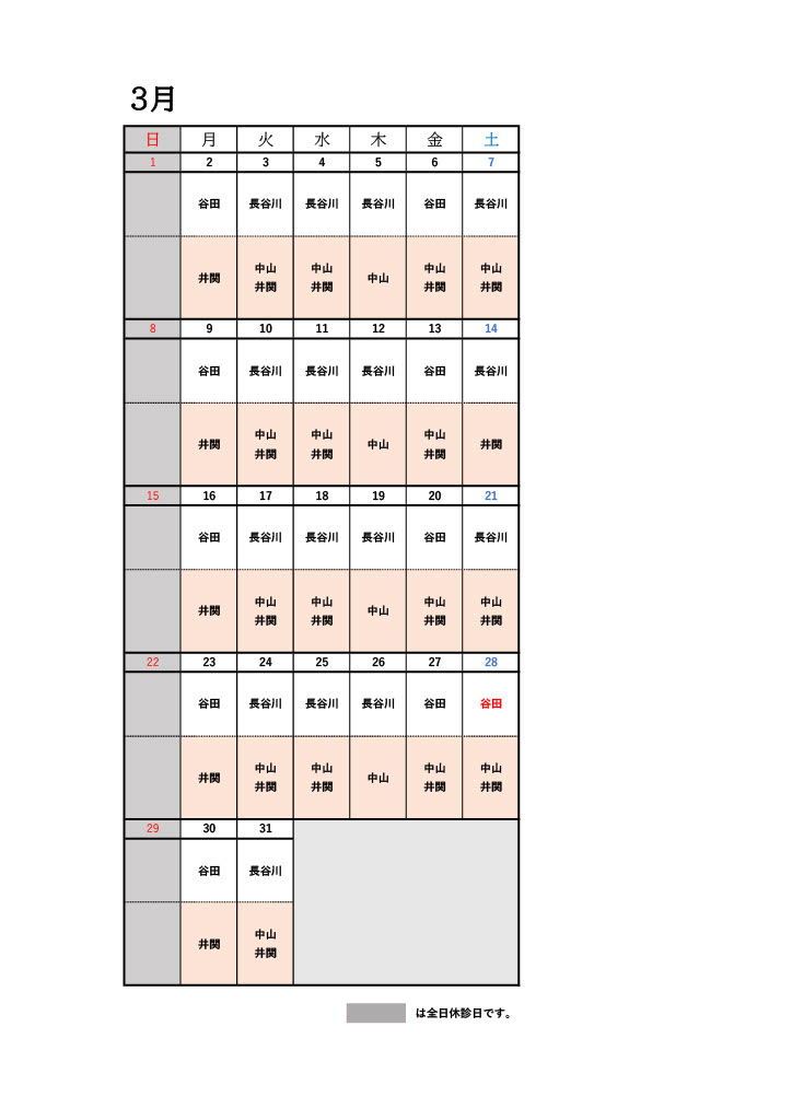 さて、3月の診療案内をさせていただきます。